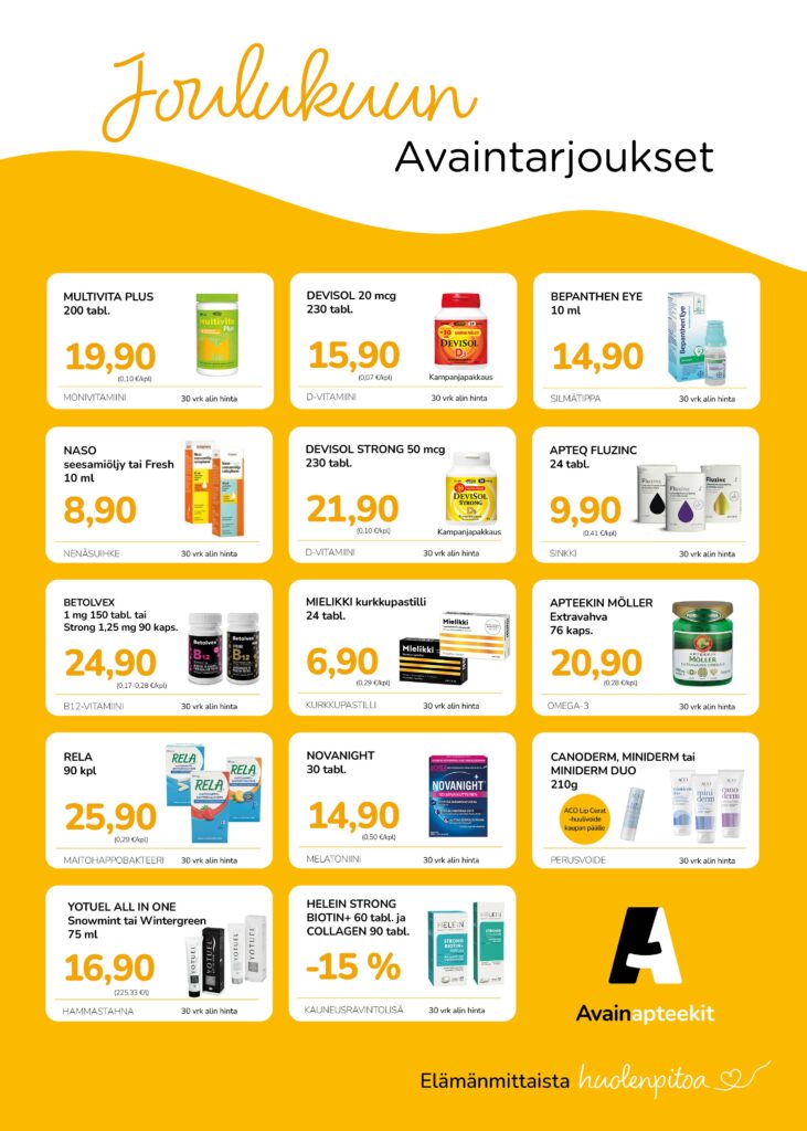 Löydät kuukauden tarjoustuotteet tältä sivulla, uusimmasta Avainapteekit –lehdestä sekä avainapteekit.fi -sivustolta.