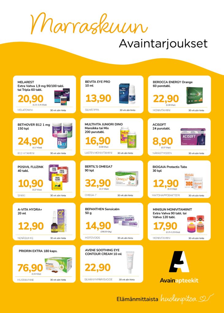 Löydät kuukauden tarjoustuotteet tältä sivulla, uusimmasta Avainapteekit –lehdestä sekä avainapteekit.fi -sivustolta.