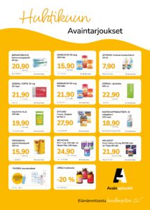 Olemme osa Avainapteekit – ketjua, mikä takaa asiakkaillemme aina tuoreinta tietoa terveydestä ja hyvinvoinnista sekä kuukausittain vaihtuvia tarjoustuotteita ja muita etuja. Tutustu avainasiakkuuteen.