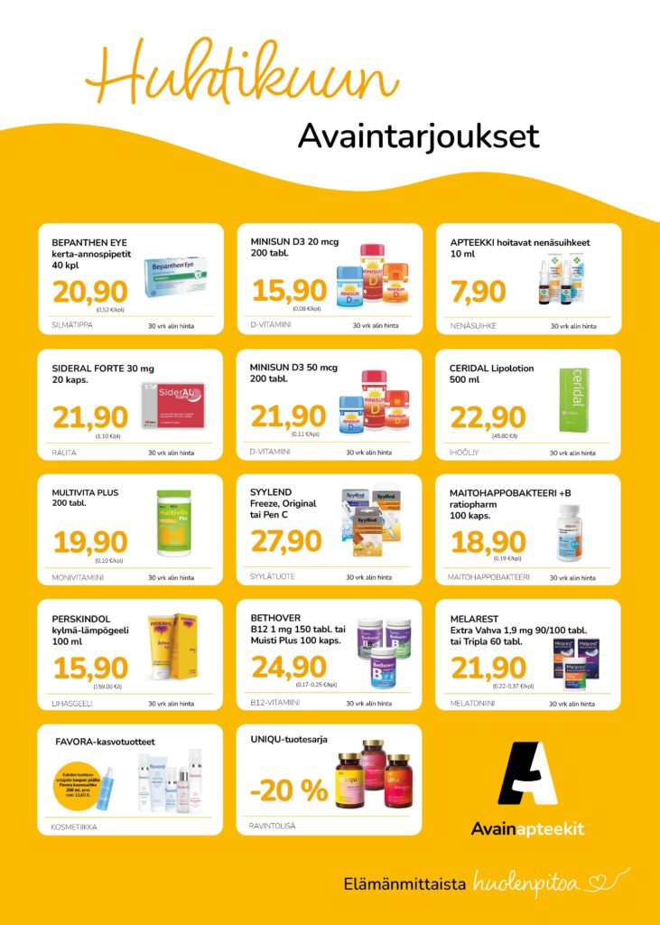 Löydät kuukauden tarjoustuotteet tältä sivulla, uusimmasta Avainapteekit –lehdestä sekä avainapteekit.fi -sivustolta.
